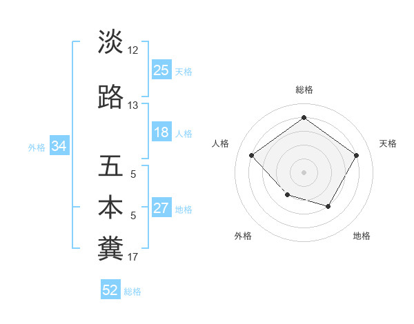 淡路 五本糞さんを姓名の画数から五運を鑑定