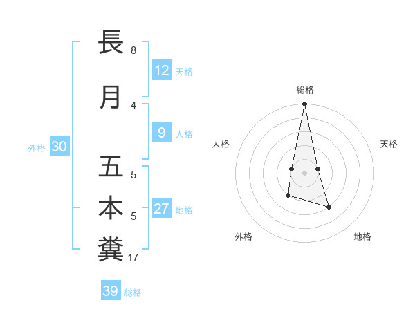 長月 五本糞さんを姓名の画数から五運を鑑定