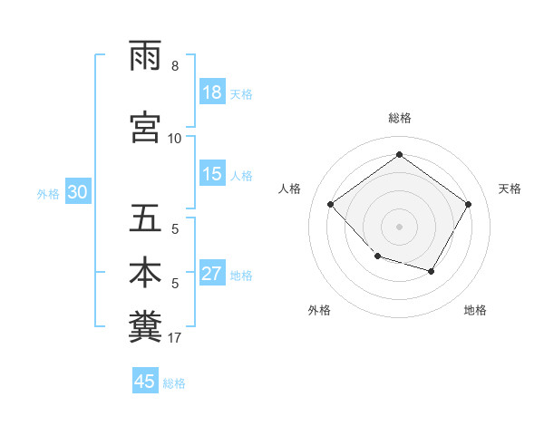雨宮 五本糞さんを姓名の画数から五運を鑑定