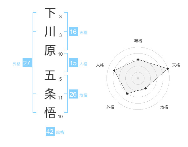 下川原 五条悟さんを姓名の画数から五運を鑑定