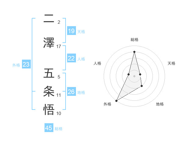 二澤 五条悟さんの総格は45画の4点!