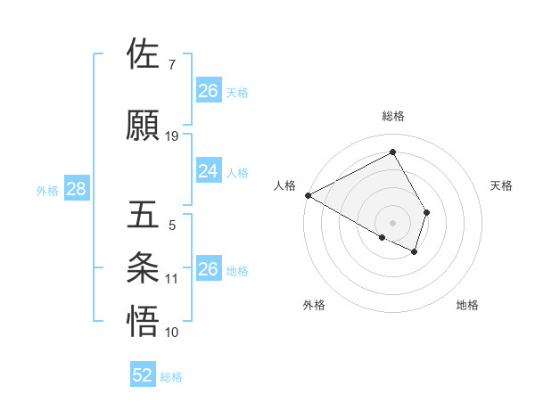 佐願 五条悟さんの総格は52画の4点!