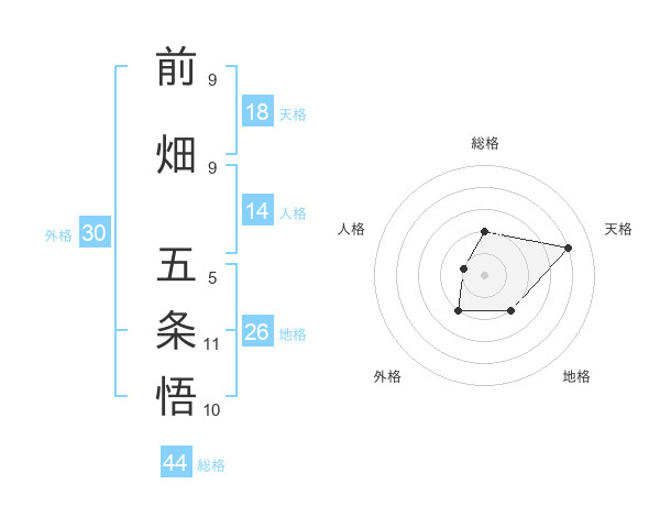 前畑 五条悟さんの天格は18画の4点!