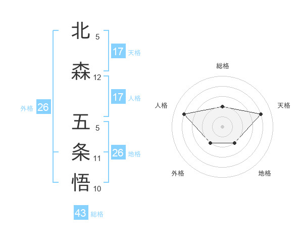 北森 五条悟さんを姓名の画数から五運を鑑定