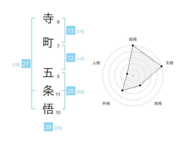 寺町 五条悟さんの天格は13画の5点!