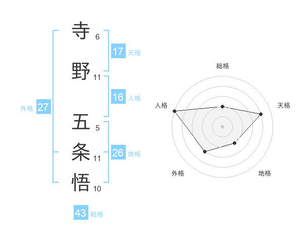 寺野 五条悟さんを姓名の画数から五運を鑑定