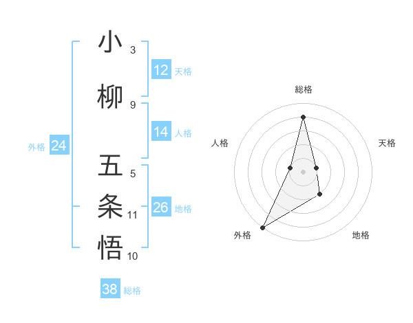 小柳 五条悟さんを姓名の画数から五運を鑑定