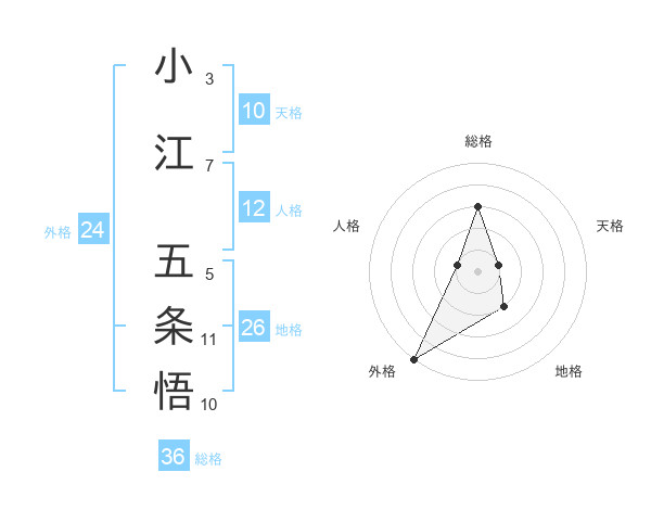 小江 五条悟さんの地格は26画の2点!