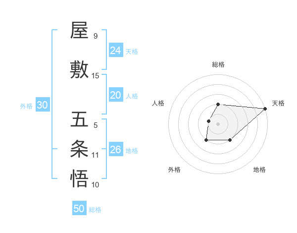 屋敷 五条悟さんを姓名の画数から五運を鑑定