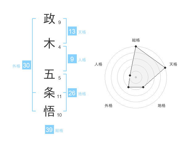 政木 五条悟さんを姓名の画数から五運を鑑定