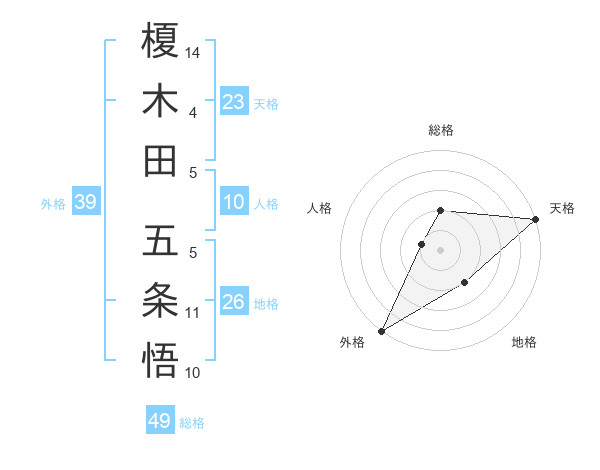 榎木田 五条悟さんを姓名の画数から五運を鑑定
