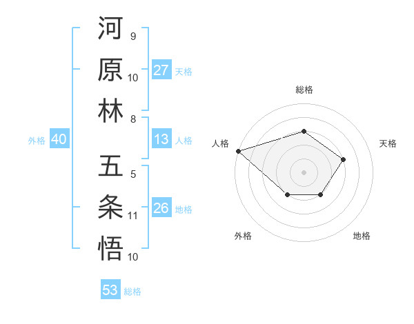 河原林 五条悟さんの総格は53画の3点!