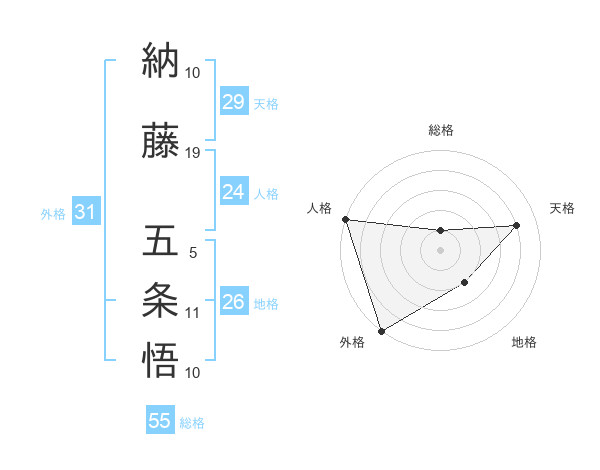 納藤 五条悟さんを姓名の画数から五運を鑑定
