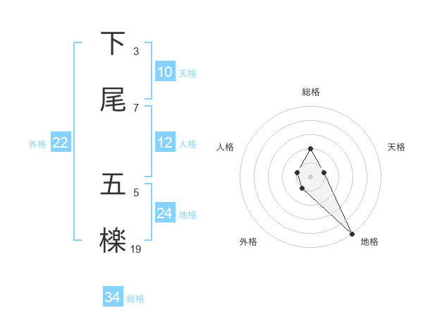 下尾 五檪さんの総格は34画の2点!