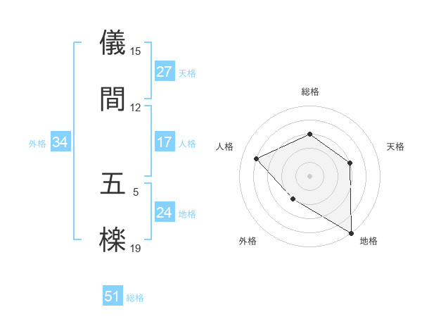 儀間 五檪さんの総格は51画の3点!