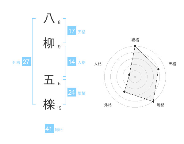 八柳 五檪さんを姓名の画数から五運を鑑定