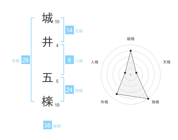 城井 五檪さんの総格は38画の4点!