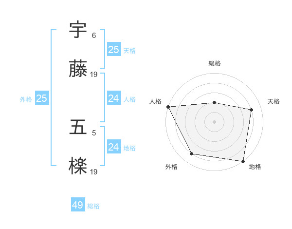 宇藤 五檪さんを姓名の画数から五運を鑑定