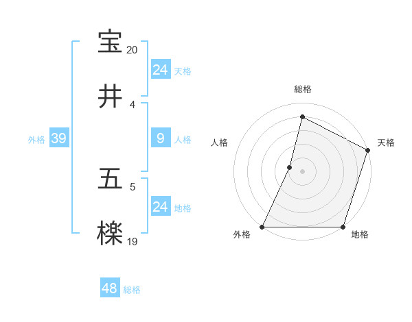 宝井 五檪さんを姓名の画数から五運を鑑定