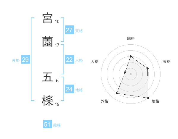 宮薗 五檪さんの総格は51画の3点!