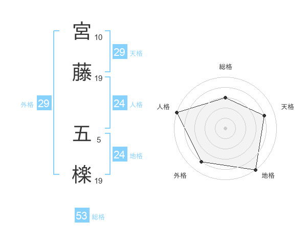 宮藤 五檪さんの総格は53画の3点!