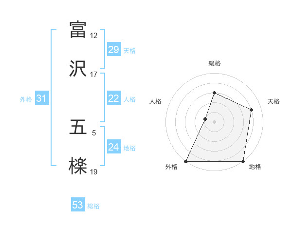 富沢 五檪さんの総格は53画の3点!