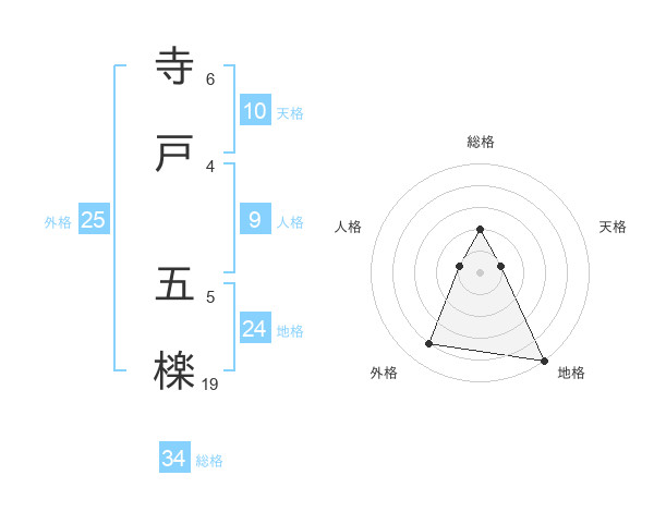 寺戸 五檪さんの総格は34画の2点!