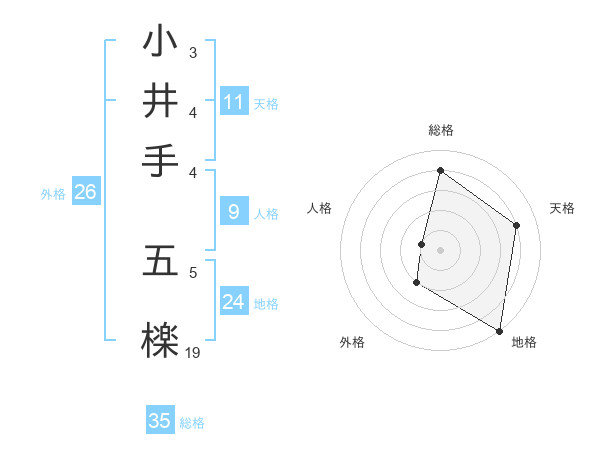 小井手 五檪さんを姓名の画数から五運を鑑定