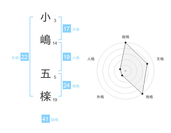 小嶋 五檪さんの外格は22画の1点!