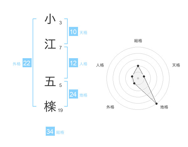 小江 五檪さんの総格は34画の2点!
