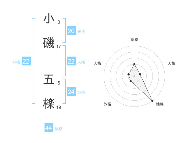 小磯 五檪さんを姓名の画数から五運を鑑定