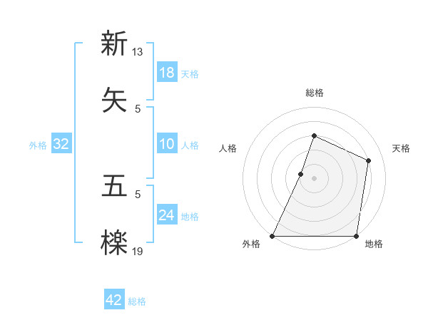 新矢 五檪さんを姓名の画数から五運を鑑定