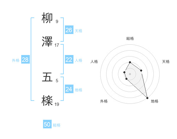 柳澤 五檪さんの総格は50画の2点!