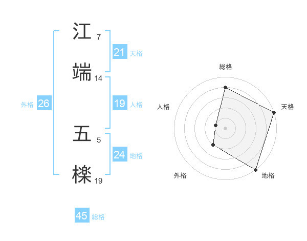 江端 五檪さんの総格は45画の4点!