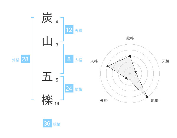 炭山 五檪さんの総格は36画の3点!