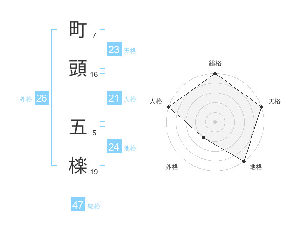 町頭 五檪さんを姓名の画数から五運を鑑定