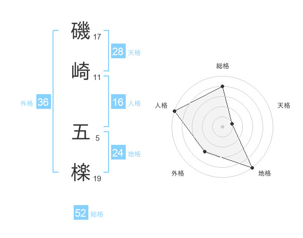 磯崎 五檪さんを姓名の画数から五運を鑑定