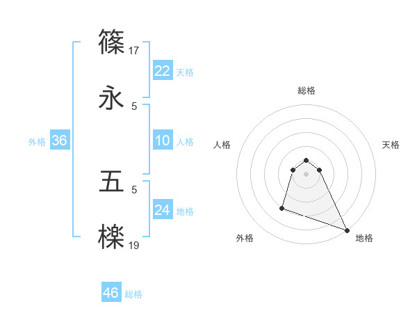 篠永 五檪さんの総格は46画の1点!