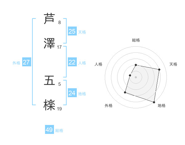 芦澤 五檪さんを姓名の画数から五運を鑑定
