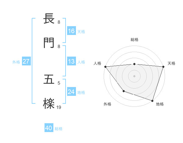 長門 五檪さんの総格は40画の2点