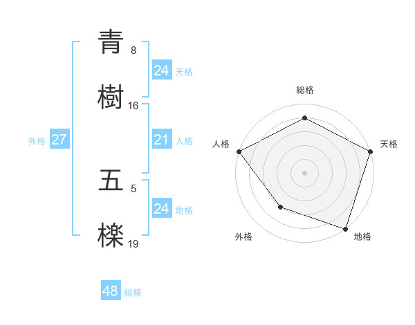青樹 五檪さんの総格は48画の4点!