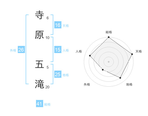 寺原 五滝さんを姓名の画数から五運を鑑定