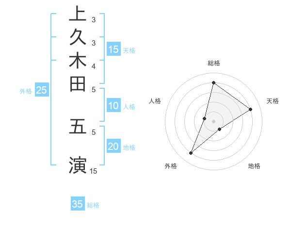 上久木田 五演さんを姓名の画数から五運を鑑定