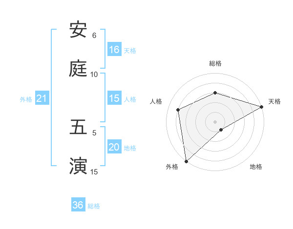 安庭 五演さんの外格は21画の5点!