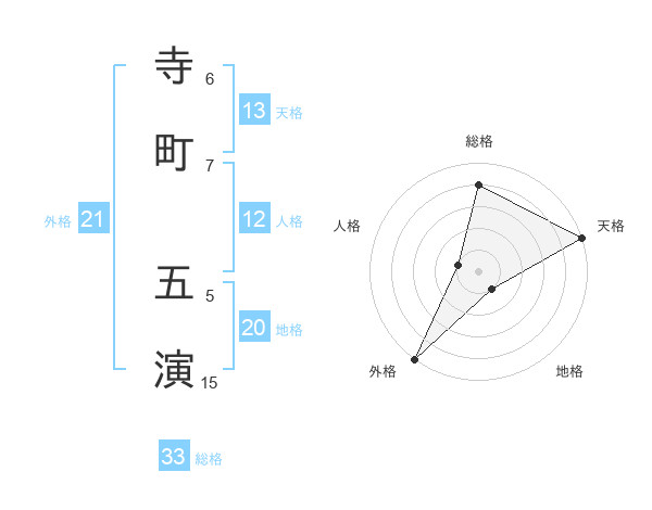寺町 五演さんの外格は21画の5点!