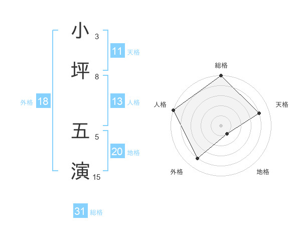 小坪 五演さんの総格は31画の5点!