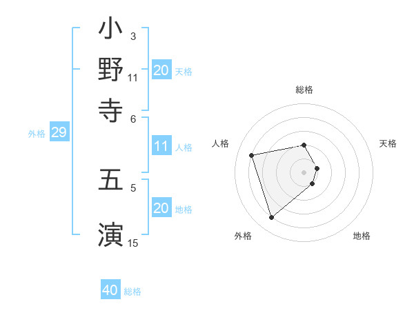 小野寺 五演さんを姓名の画数から五運を鑑定