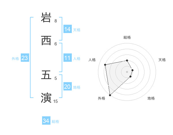 岩西 五演さんの外格は23画の5点!