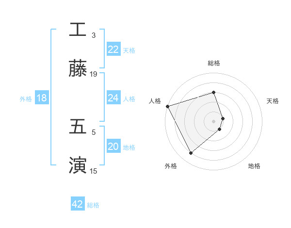 工藤 五演さんの天格は22画の1点!