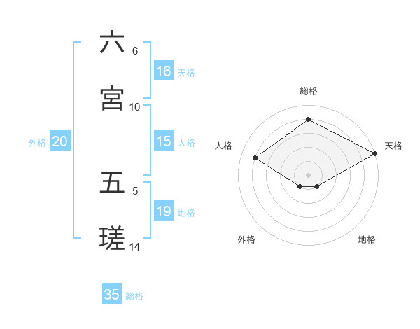 六宮 五瑳さんを姓名の画数から五運を鑑定